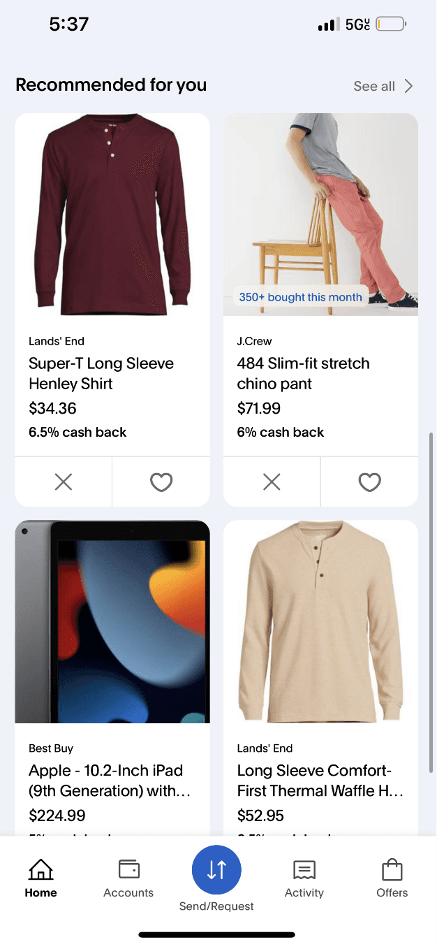 Users incorrectly assumed items weren't eligible for cashback due to unclear messaging, skipping purchases that actually qualified for rewards.Poor personalization felt irrelevant